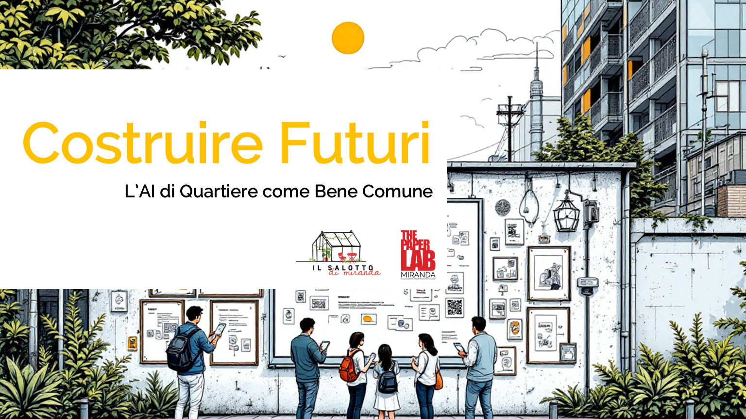 Sostieni la nascita della nostra Intelligenza Artificiale di Quartiere: un bene comune, costruito e governato insieme agli abitanti, che aiuta la comunità a raccontarsi, immaginare futuri desiderabili e creare nuove forme di partecipazione.